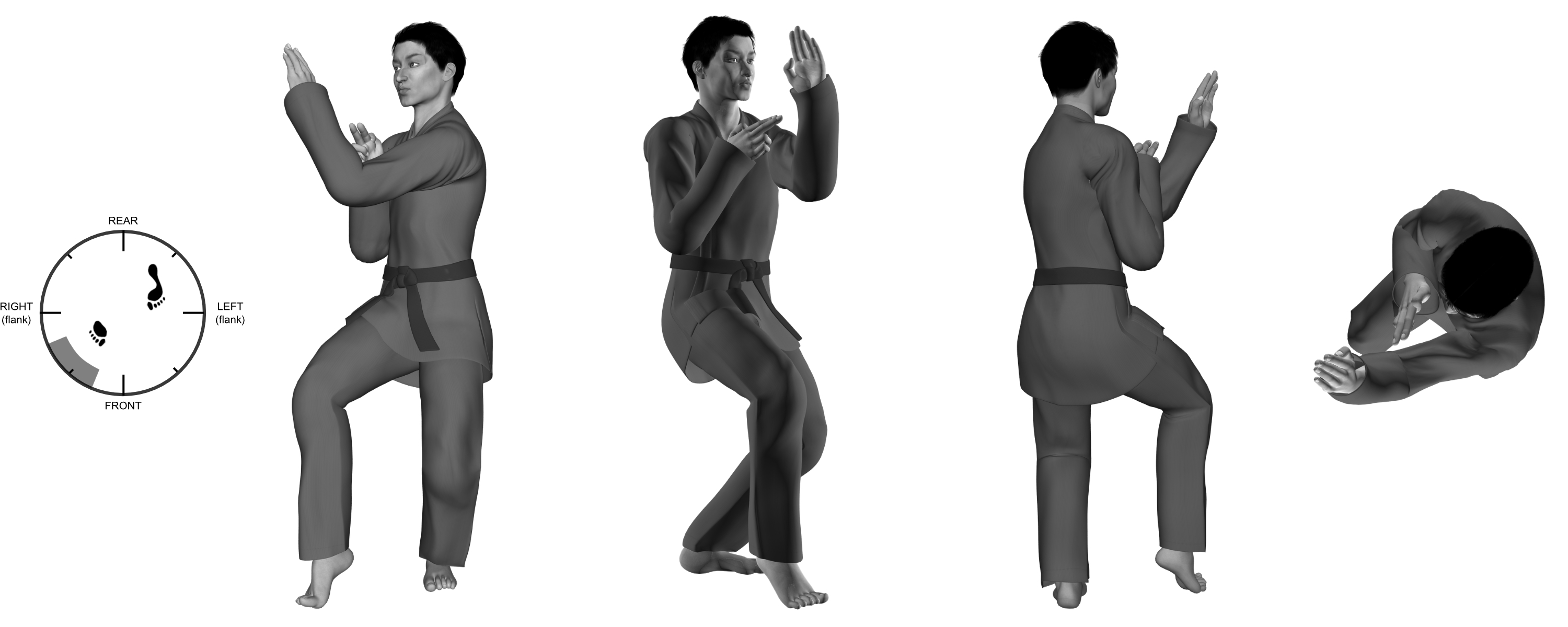 ▪Maneuver (defense) - direction: inward / upward (outward) ▪Maneuver (offense) - count: double / single ▪Maneuver (offense) - degree of open: open / closed-open ▪Maneuver (offense) - range: long / close-long ▪Maneuver (offense) - dimension (primary): horizontal (depth) / diagonal (height+width) ▪Step (initial) - direction: backward / forward ▪Step (initial) - method: distance+rotation / rotation-distance |