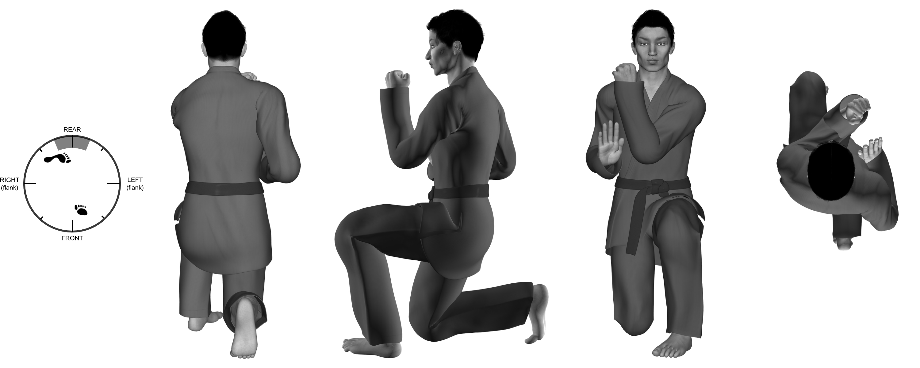 2) (left) downward back-knuckle from (left) close kneel(ing) stance