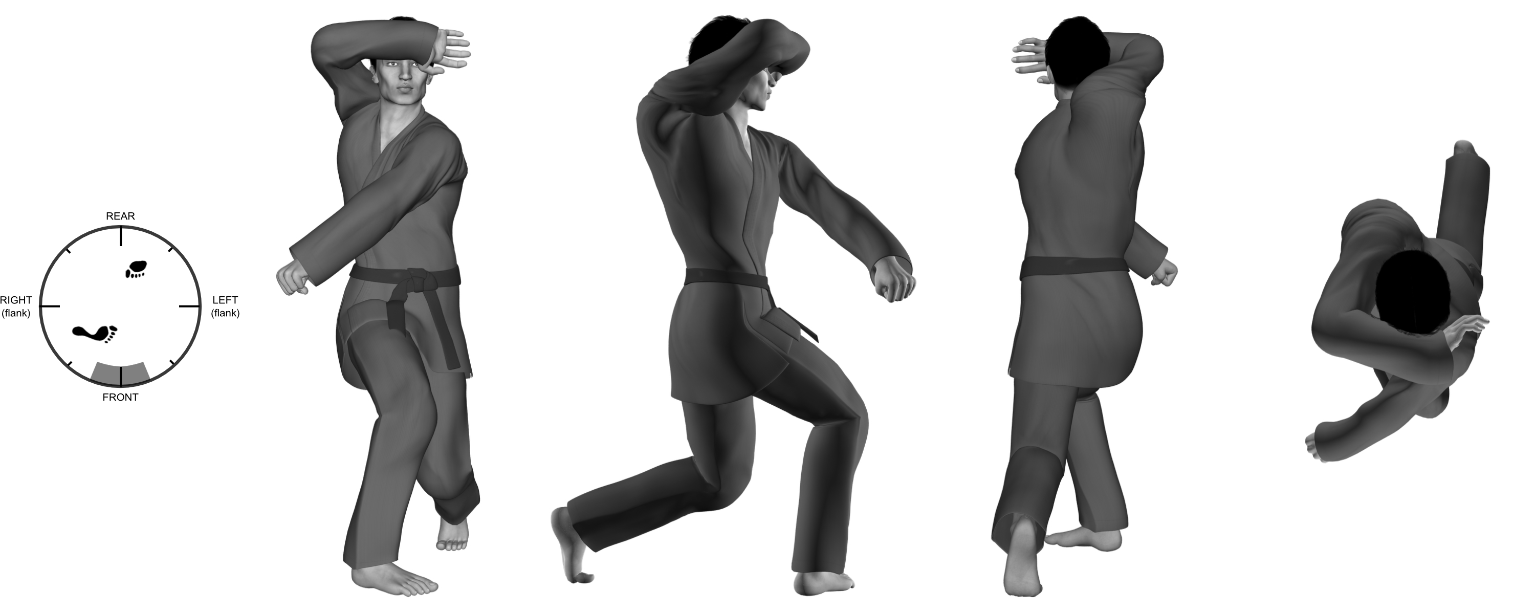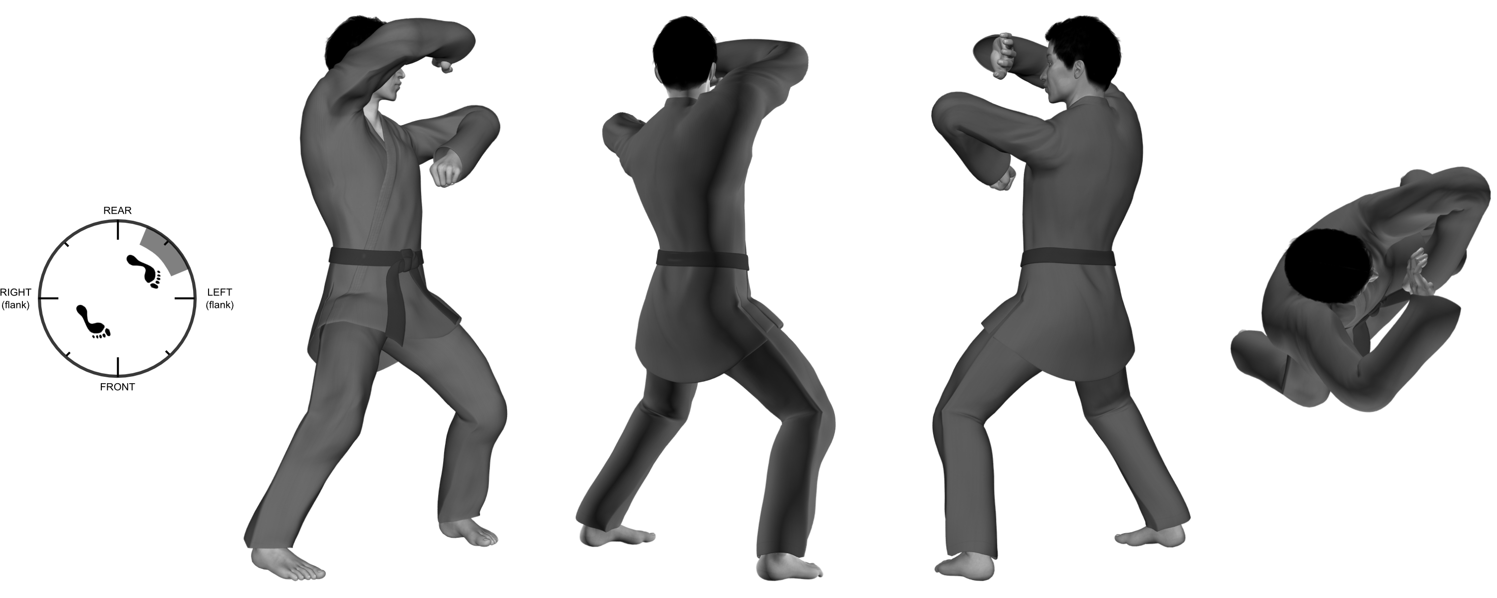 5) (right) inward-downward-diagonal hand-sword from (right) rear close kneel with (left) positional cover