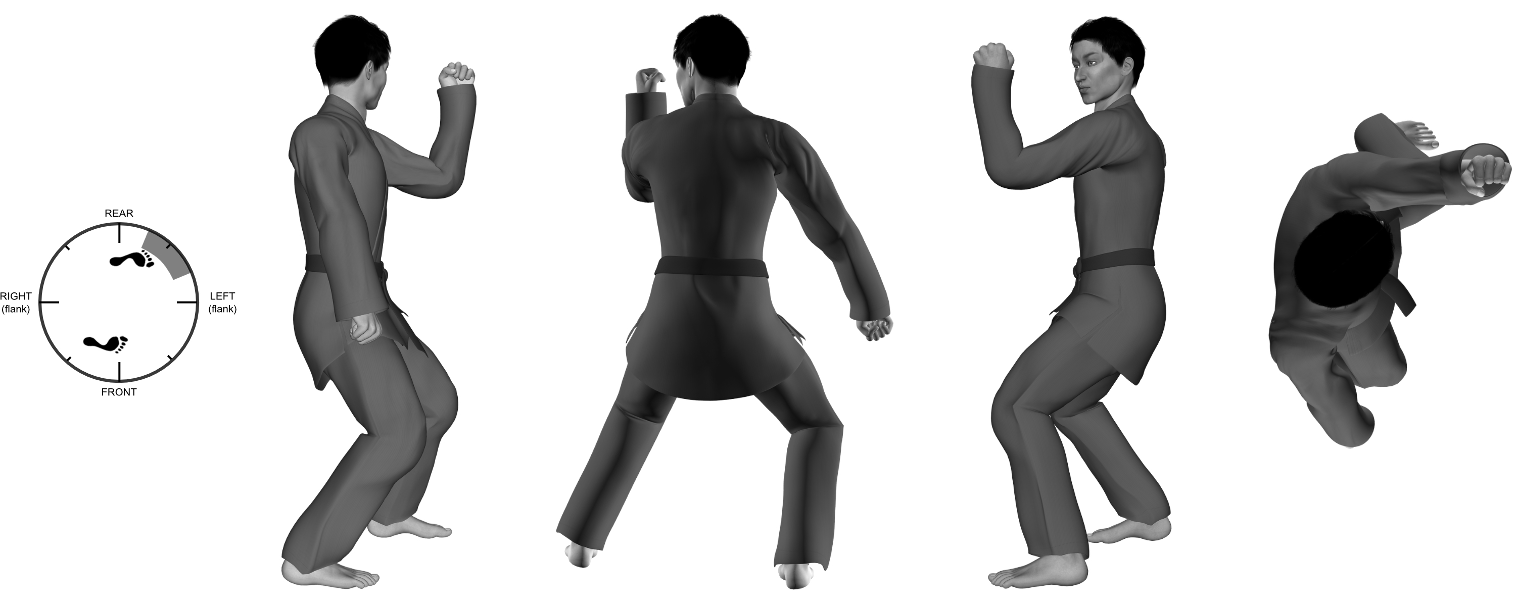 1a) (right) downward parrying block from (left) front twist