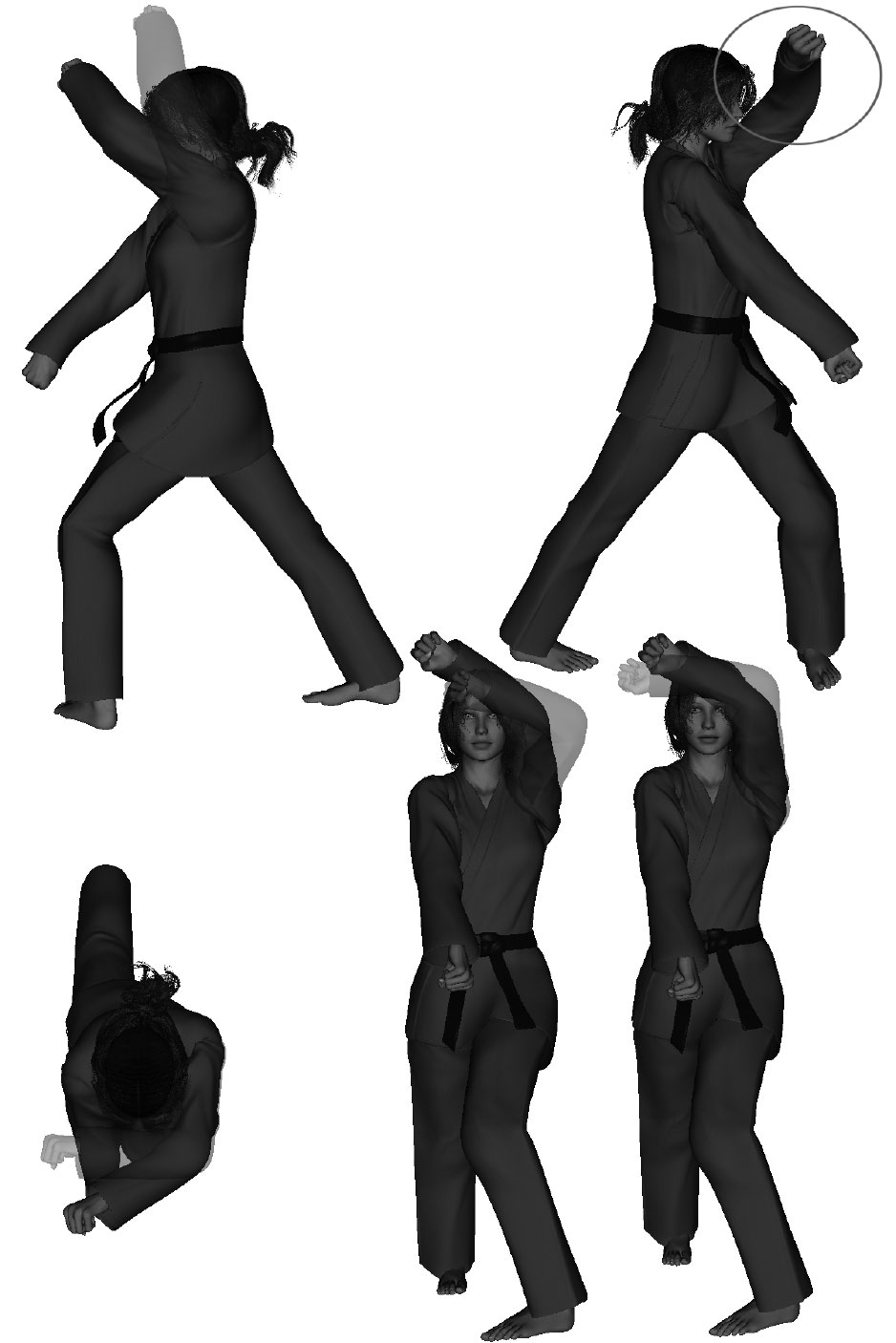 4) not ending with fist positioned (palm facing directly forward) forward at 45 degrees away from you